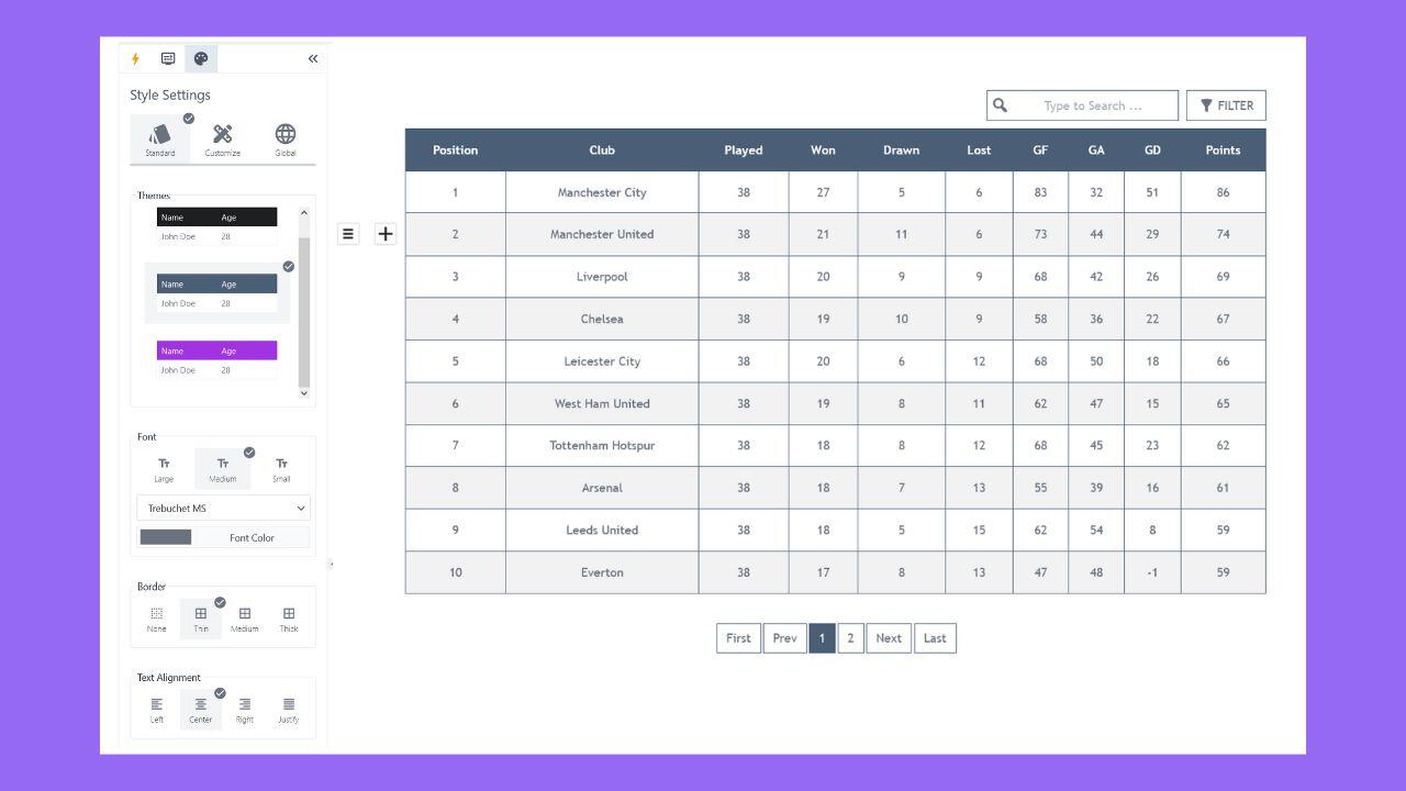 When you have many different tables on your site, its natural that you want them to have different styles. Tablesome has made it easier for you to create multiple tables with different styles.