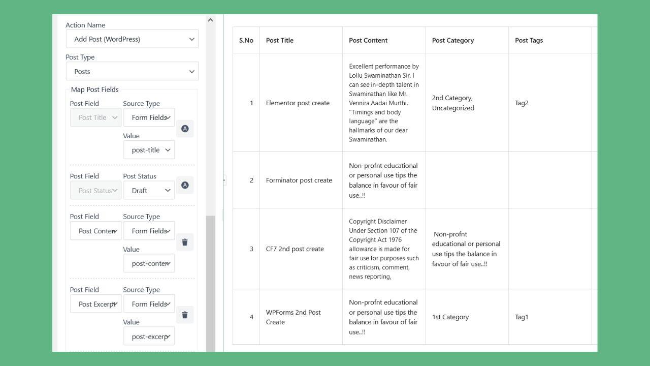 So in the latest version of Tablesome Pro (v 0.8.9), you have the “Add Post” action for WordPress forms, so that you can easily create Posts, Pages, and CPTs from the Frontend. As it is the norm with Tablesome this action works for all supported form plugins namely Contact Form 7, WPForms, Forminator, and Elementor Forms.